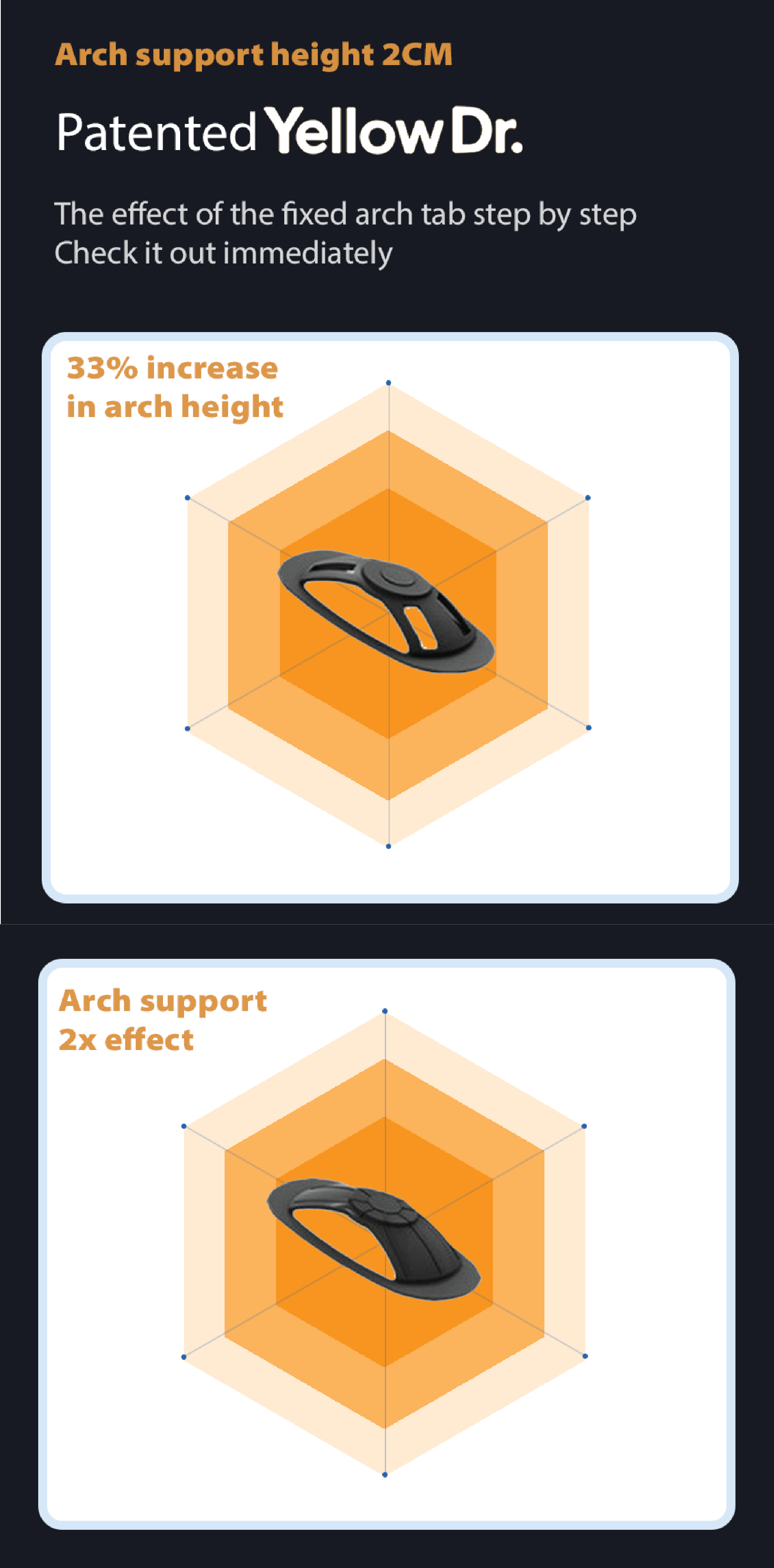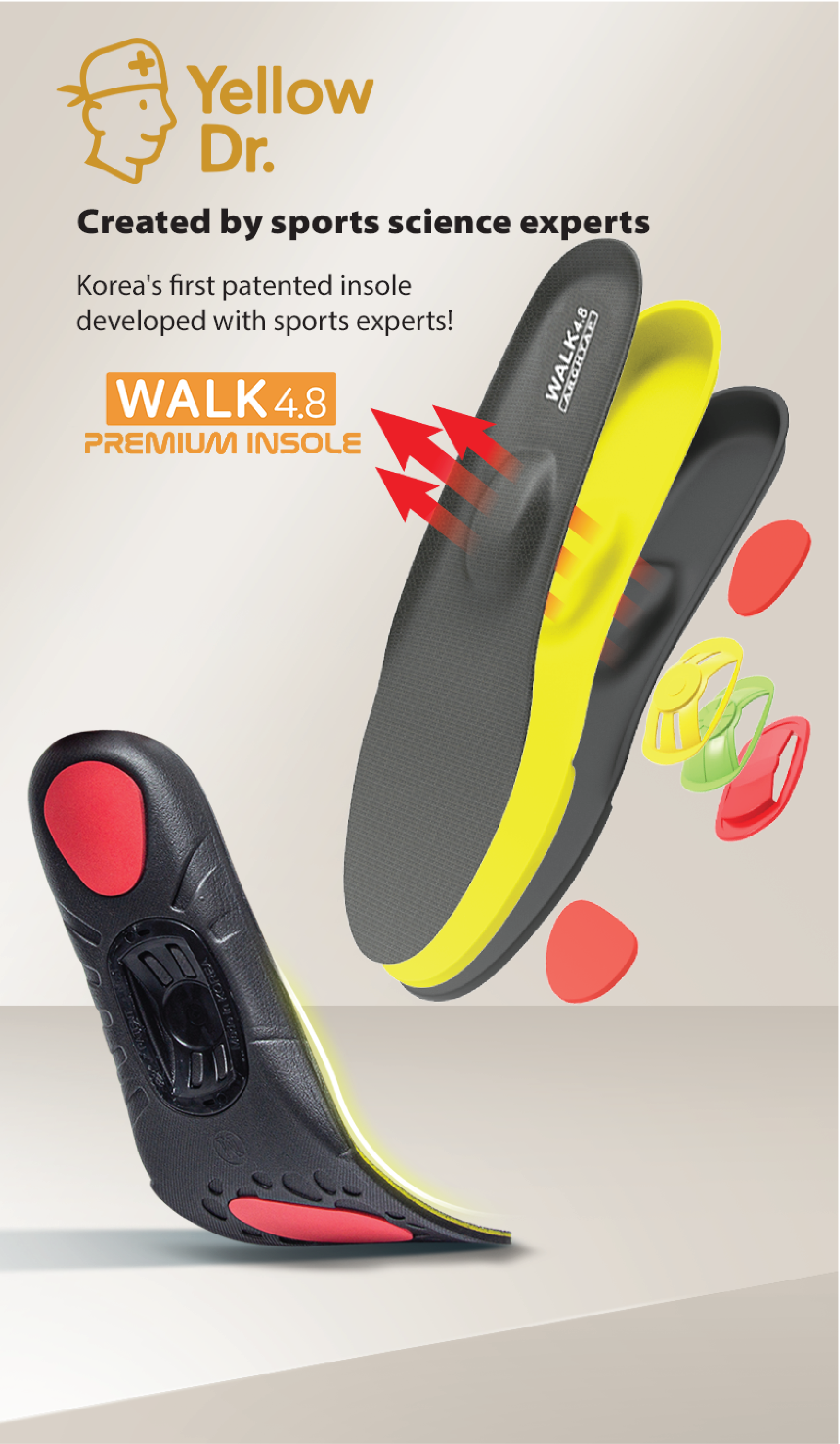 Experience every step in ultimate comfort with Yellow Dr. Walk 4.8 – the world’s only functional insole featuring automatic foot massage technology. The Upgrade version now features detachable Archtap buttons, enabling you to customize arch height up to 4 levels, providing more flexibility than the previous Walk 4.8 (Basic) model.