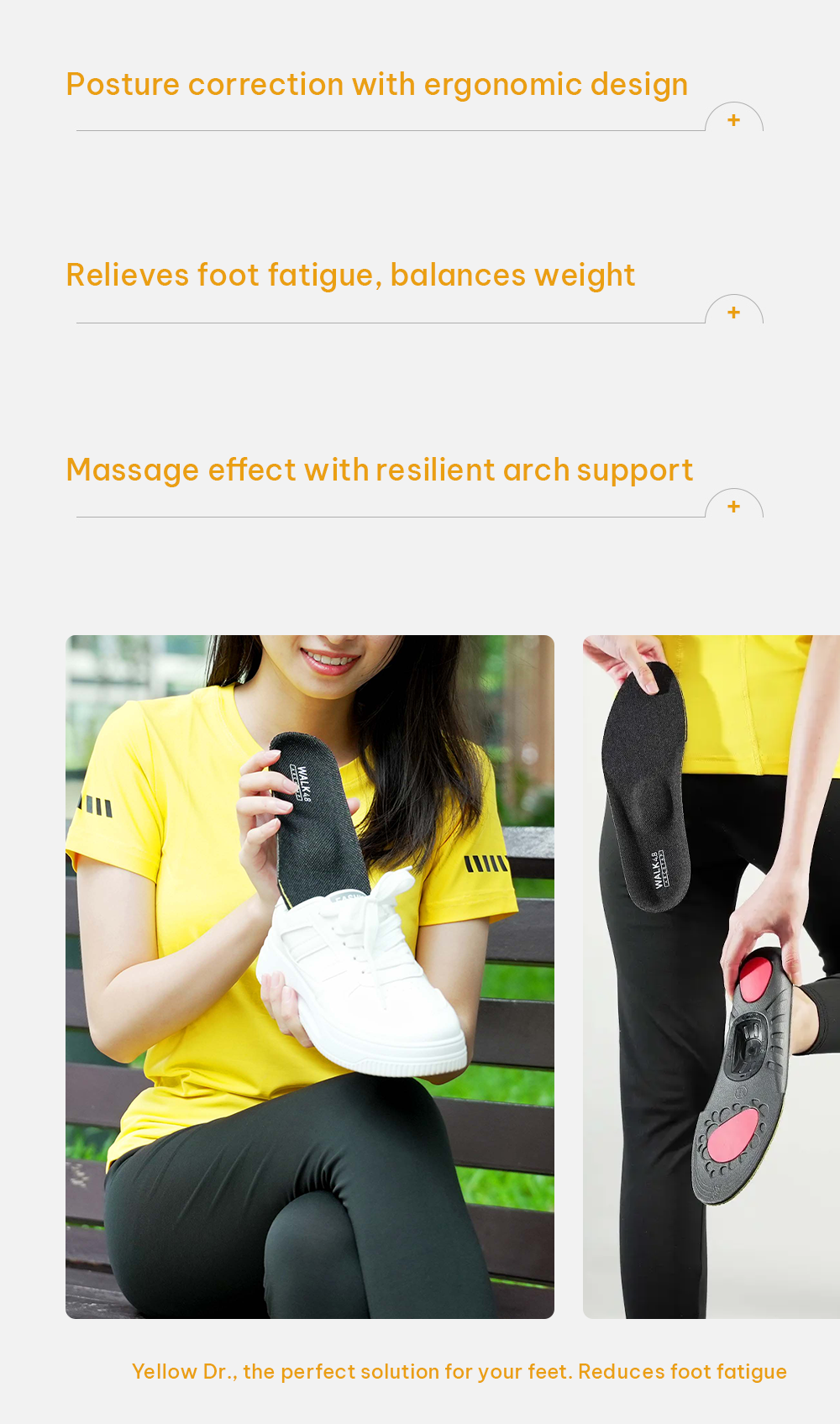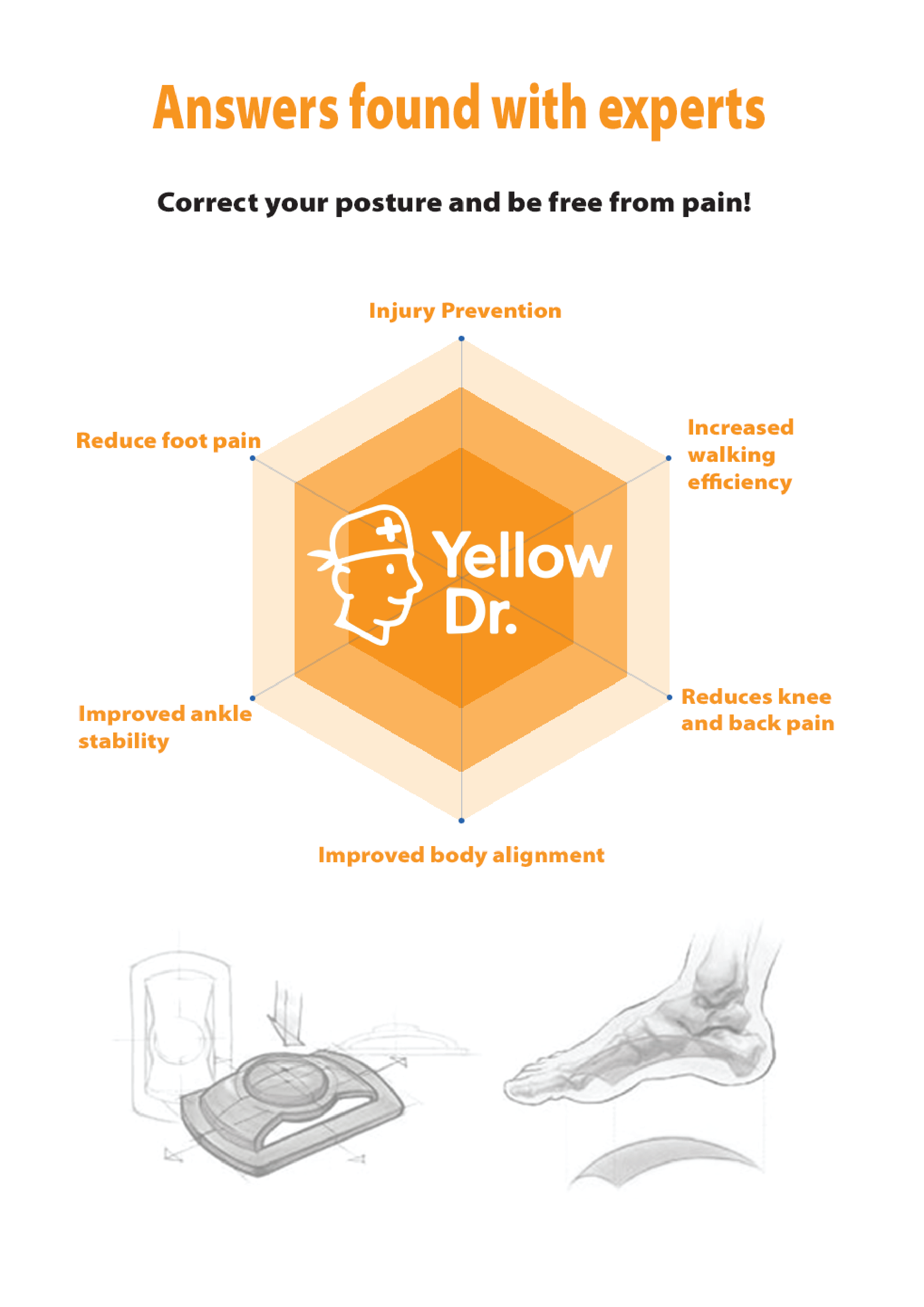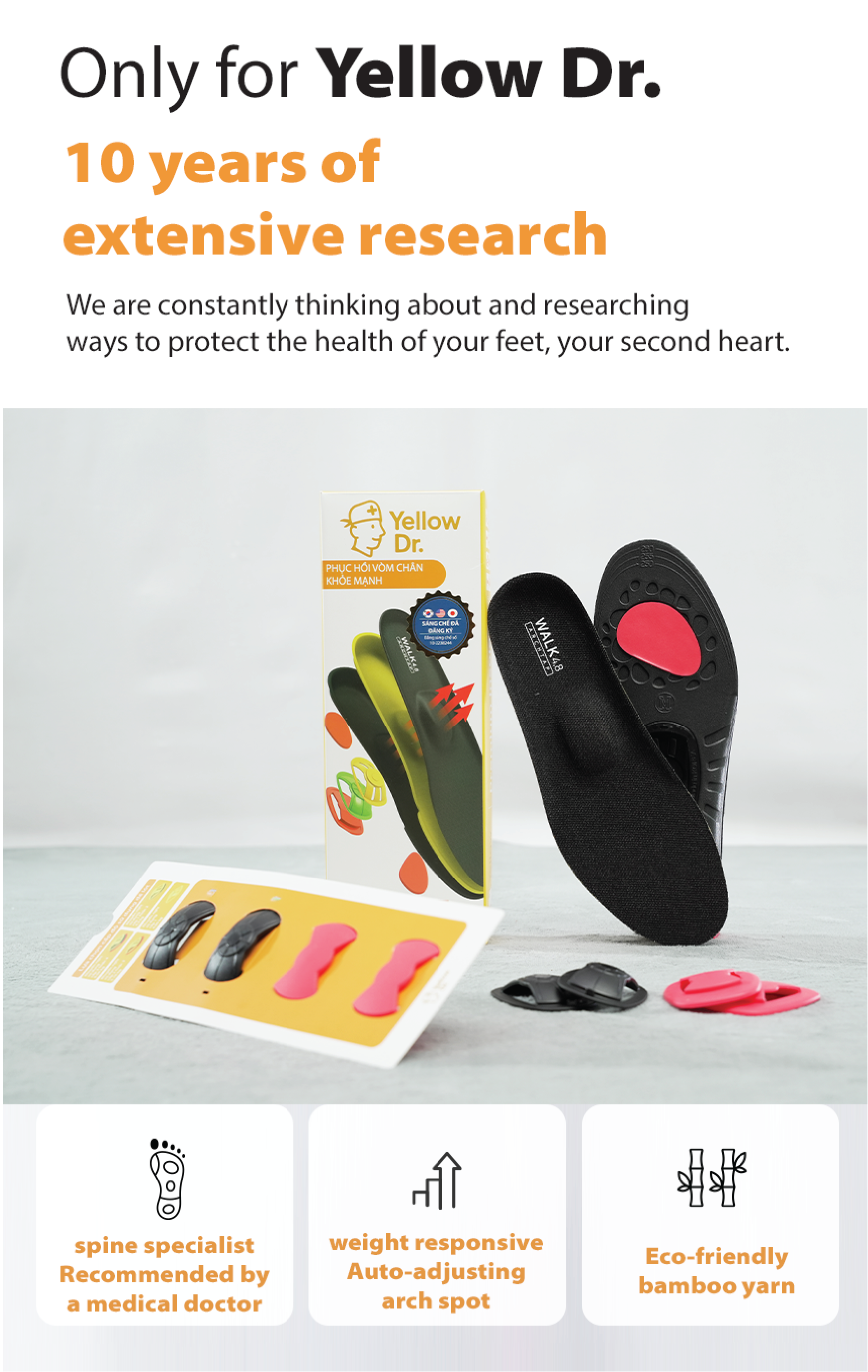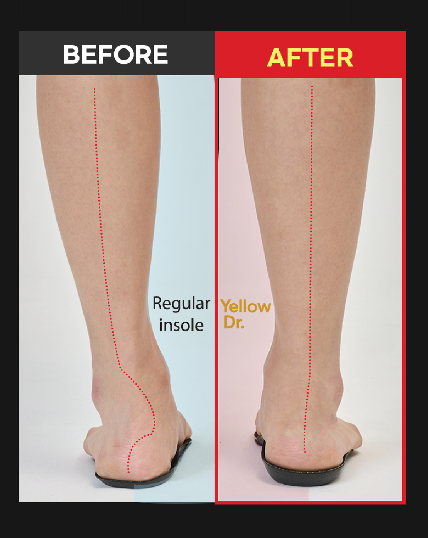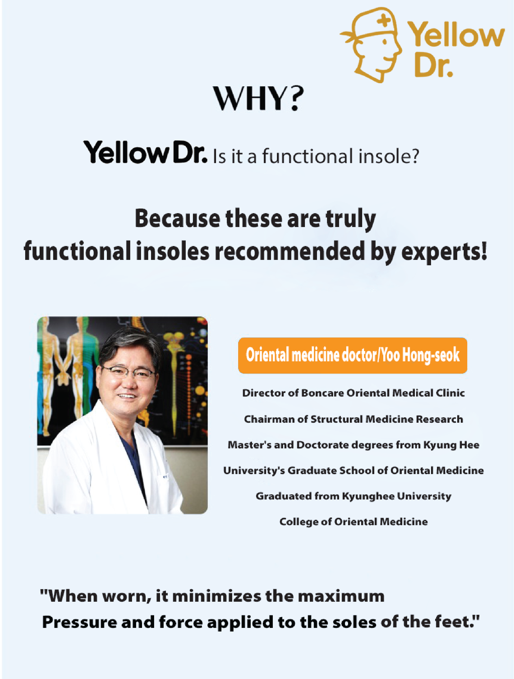 Note: Remove the original insole before inserting the Yellow Dr. insole. Discontinue use if itching or irritation occurs.