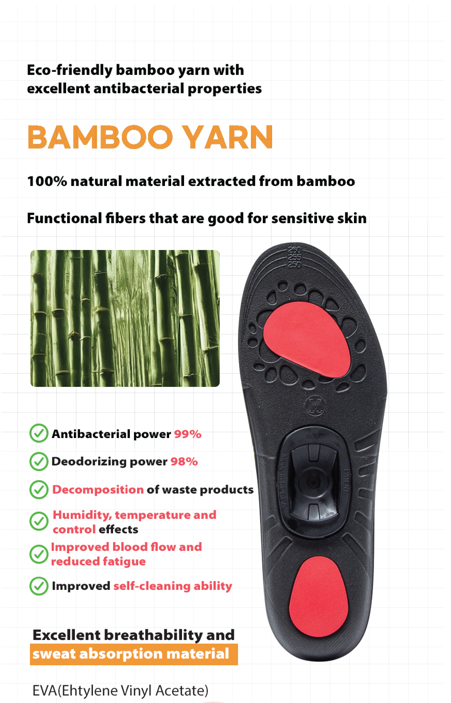 Material: Bamboo fiber, OrthoLite, Neo-Flex, TPE