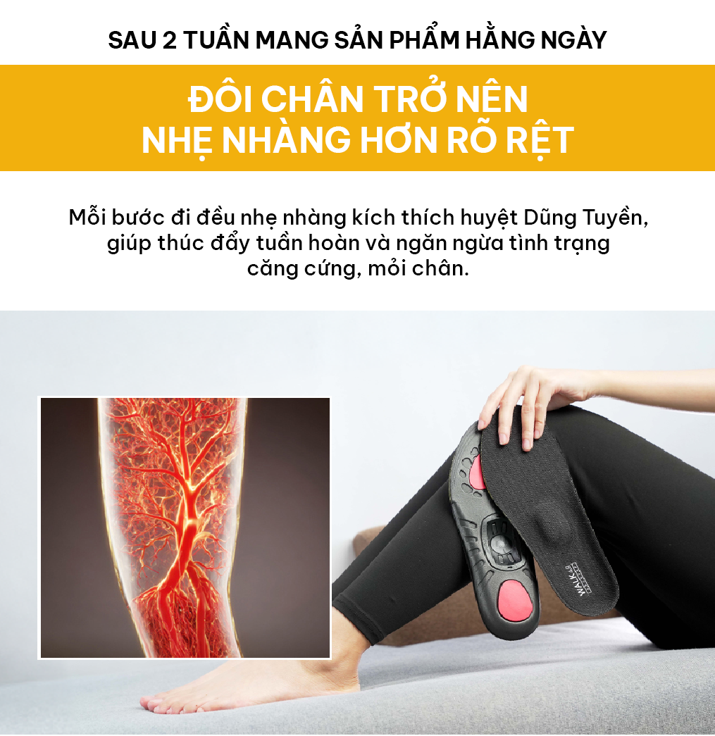• Hỗ trợ vòm chân đàn hồi giúp giảm mệt mỏi và khó chịu ở chân