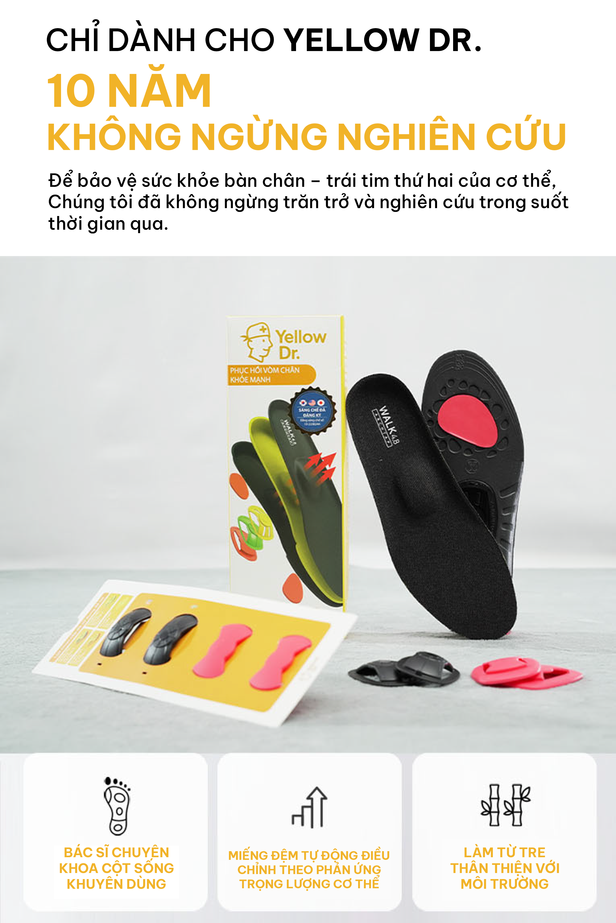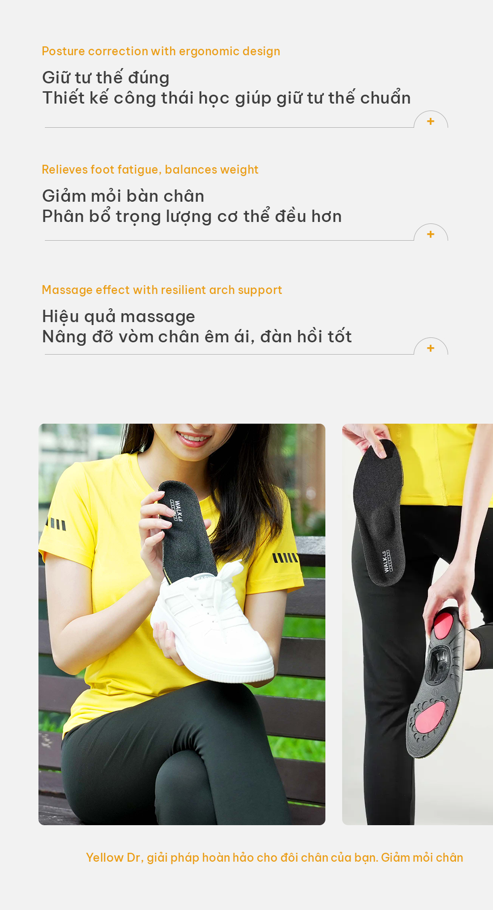 Lưu ý: cần tháo lót giày cũ trước khi cho lót giày Yellow Dr. vào; ngừng dùng nếu thấy ngứa hay kích ứng